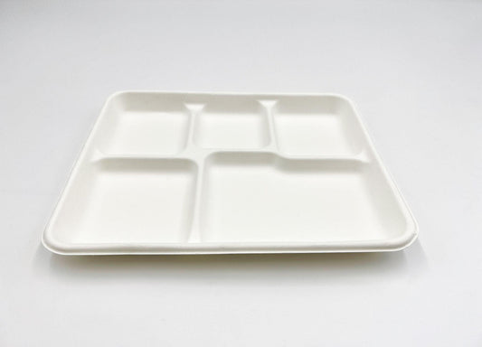 5 Compartment Compostable Tray - Single Use, Disposable, Biodegradable - 500/case